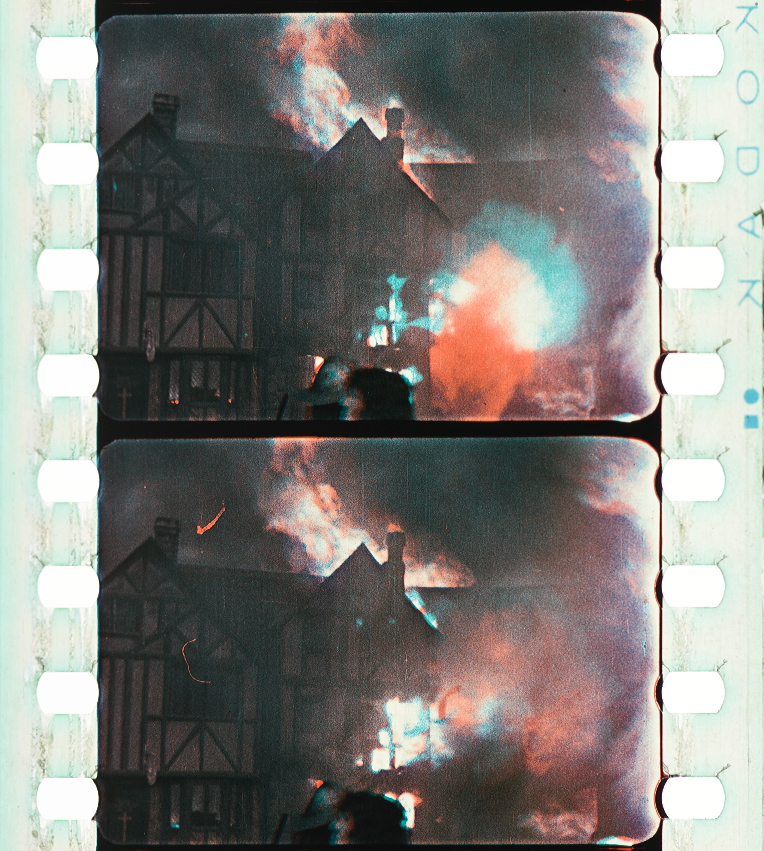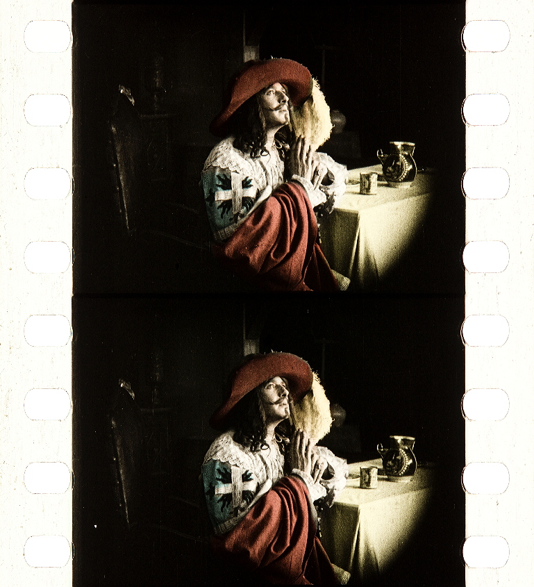 Handcoloring for scenes would soon give way to stencil processes, which gave more regular results. France and Italy would make great use of the stencil color into the sound era. The US never bothered with the stencils, but the Handshiegl process was used similarly for limited use of applied color. It was developed for Cecil B. DeMille’s 1916 production Joan the Woman by engraver Max Handshiegl and DeMille’s cinematographer Alvin Wykoff.